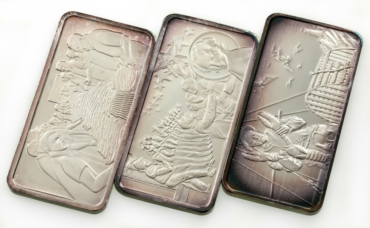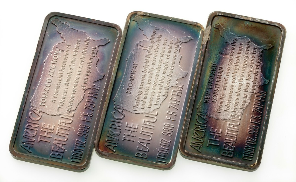 1974-75 Hamilton Mint America The Beautiful 1oz Silver Art Bars Lot of 3 bars
