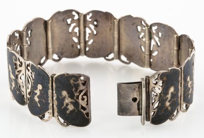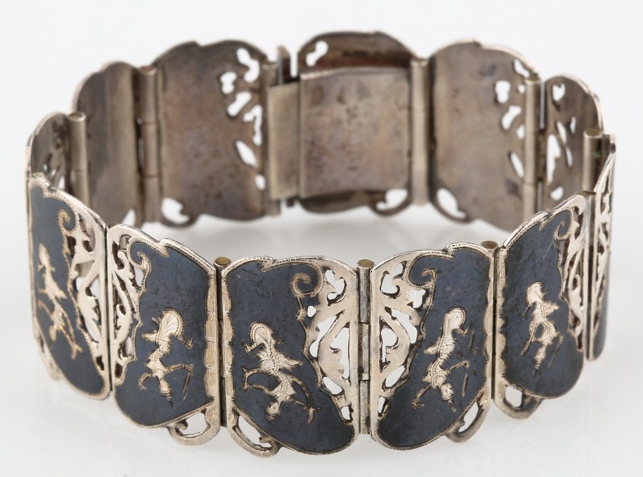 VINTAGE STERLING SILVER NIELLO-FILLED SIAMESE BRACELET