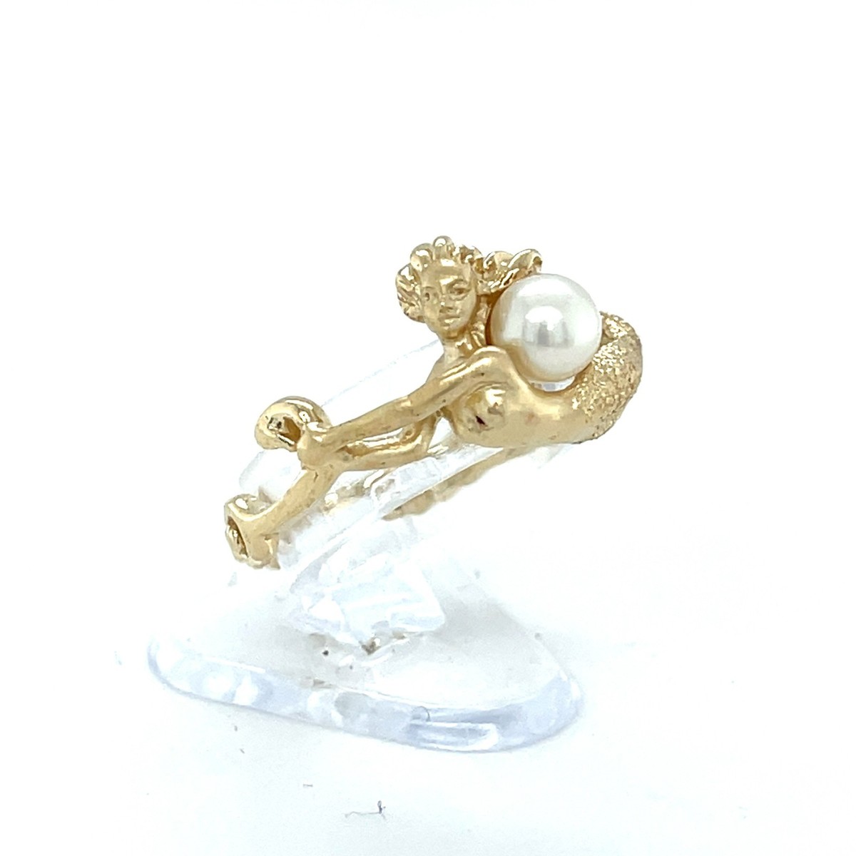 Steven Douglas 14K Yellow Gold Mermaid Pearl Ring Size 6.5 - Magnificent Design