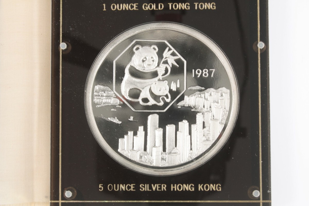 1987 Panda Oriental Set 1 Oz. Gold Tong 5 Oz. Silver Hong Kong Expo