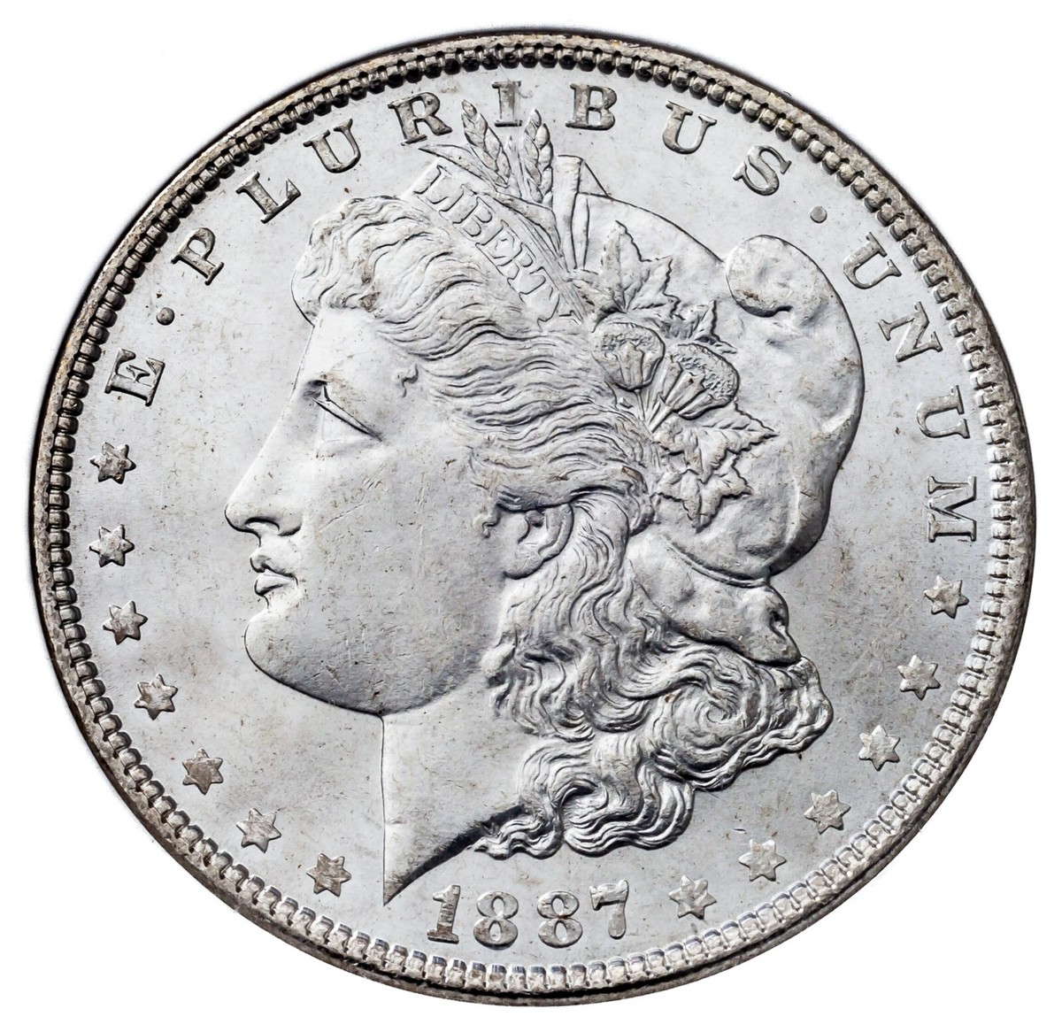 1887 Silver Morgan Dollar Graded by PCGS as MS-63