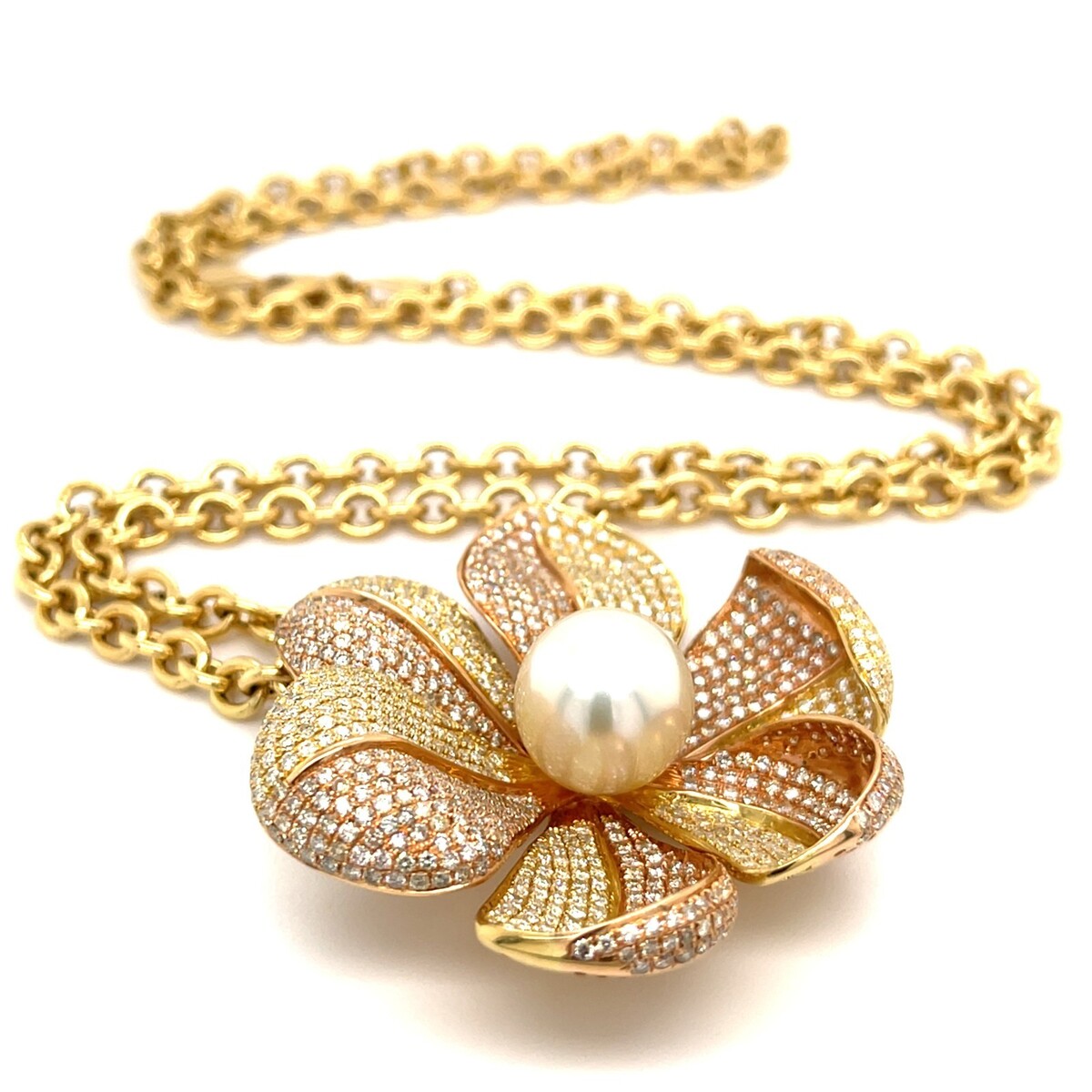 18K Gold Hasbani Gioielli 13mm Pearl & 9ct Diamond Pendant Necklace 23" 38.2g