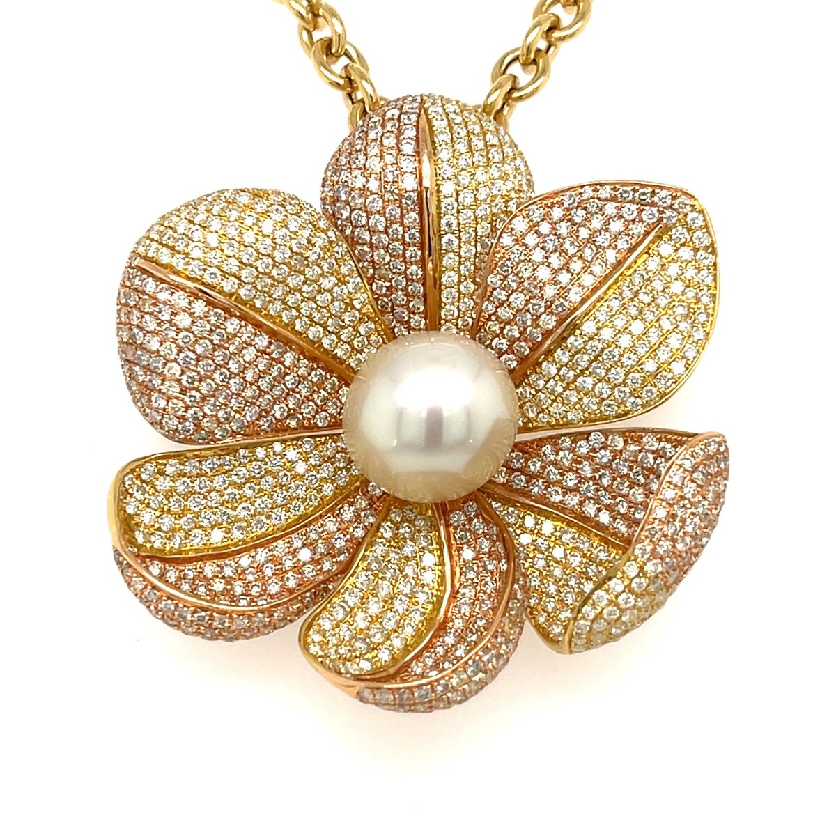 18K Gold Hasbani Gioielli 13mm Pearl 9ct Diamond Pendant Necklace 23" 38.2g