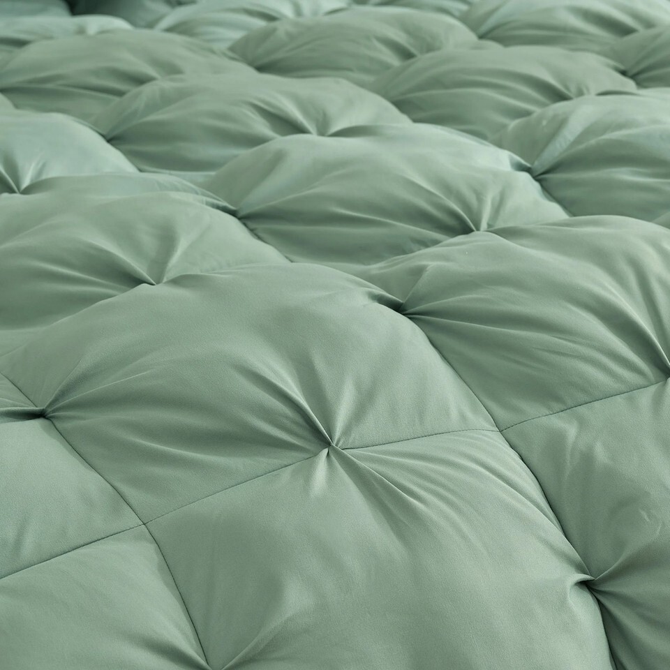 Elevate your bedroom with the perfect mix of softness, style, and warmth. This comforter set features a lofty pintuck design on the comforter that adds texture and visual depth, and the baffle box construction keeps the fill evenly distributed, creating a look that?s timeless and inviting. The super soft fabric is machine washable for easy care and everyday comfort.