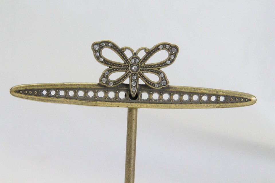 Vintage Brass Earring Jewelry Display Stand Butterfly Rhinestones 18 Holes