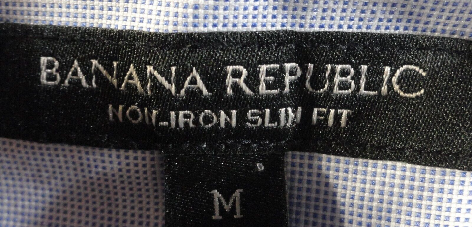 BANANA REPUBLIC NON-IRON SLIM FIT BLUE WHITE PLAID LONG SLEEVE BUTTON UP SHIRT M