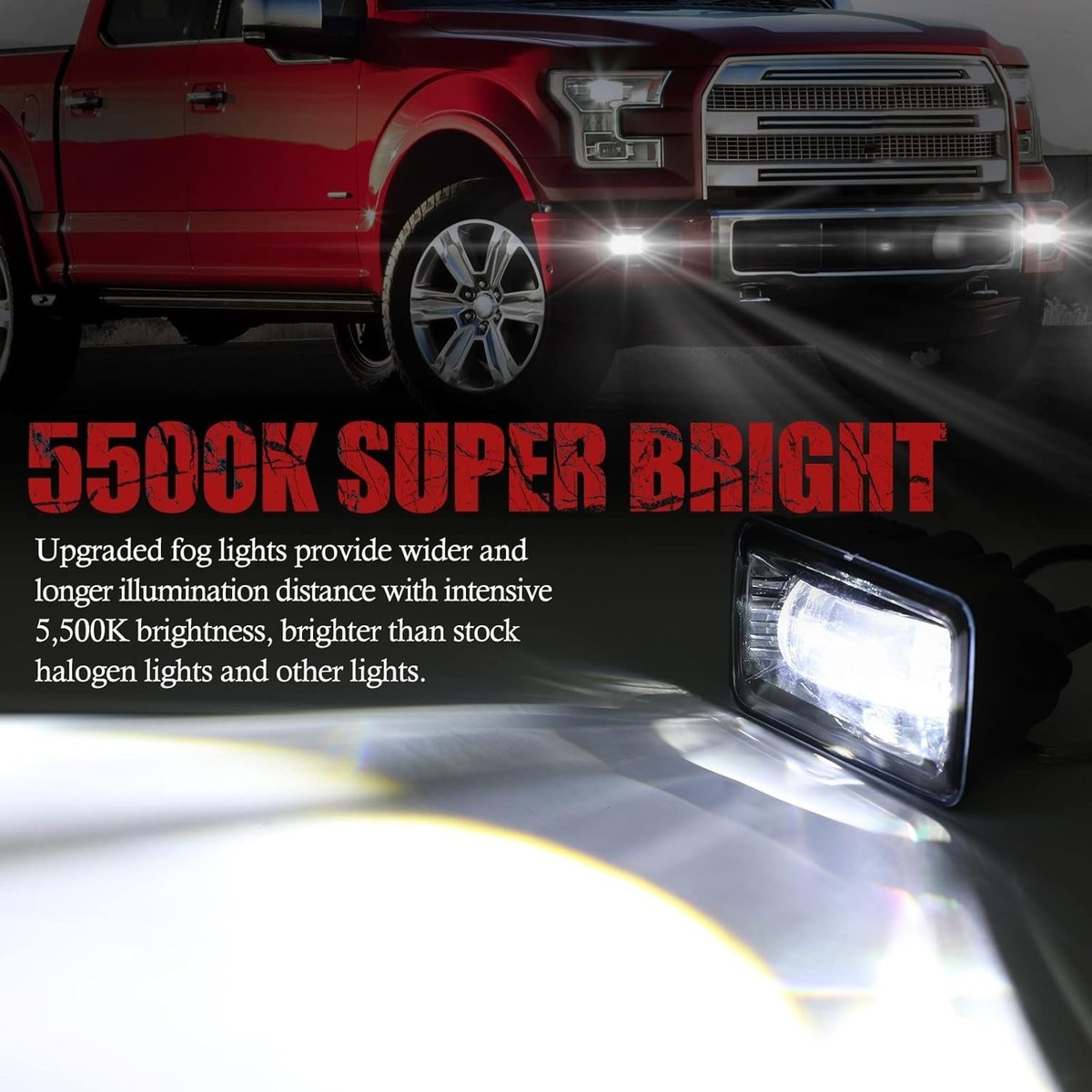 SUPER BRIGHT LED FOG LIGHTS: Upgraded fog lights provide wider and longer illumination distance with intensive 5,500K brightness, brighter than stock halogen lights and other lights, giving you safer driving and excellent driving experience