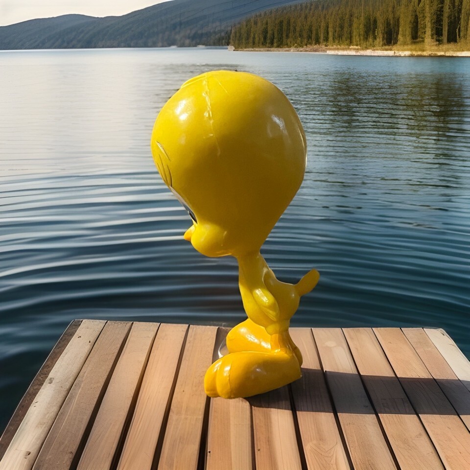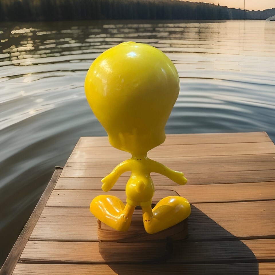 The product is a 6" poseable Tweety Bird collectible from 1997, manufactured by Warner Brothers Studios as part of the Looney Tunes franchise. This interactive item allows fans to play with and display their favorite animated character in a nostalgic and fun way. Perfect for collectors and fans of classic Looney Tunes, this poseable Tweety Bird is a unique and charming piece of animation merchandise.