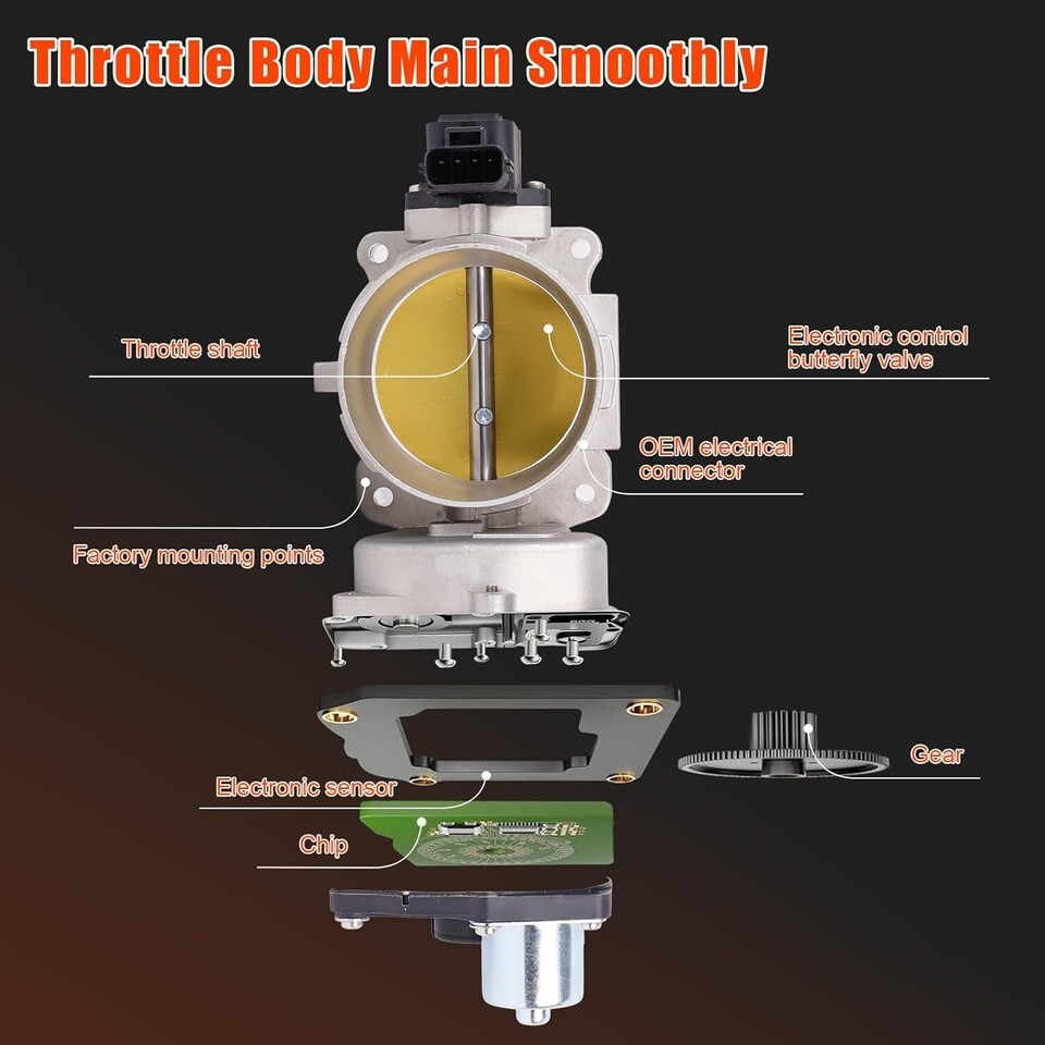 Compatible Vehicles: Throttle body compatible with Ford Crown Victoria V8 4.6L 2005-2011, for E-150 V8 4.6L 2005-2006, for E-150 V8 5.4L 2006-2014, for E-150 Club Wagon 2005, for E-150 Econoline V8 5.4L 2007-2008, for E-250 2005-2014, for E-350 Club Wagon V8 5.4L 2008, for E-350 Super Duty V8 5.4L 2005-2016, for E-450 Super Duty V8 5.4L 2006-2016, for Econoline 2005-2006, for Explorer 2004-2019, for Explorer Sport Trac V6 4.0L 2007-2010, for F-150 V8 4.6L 2004-2006, for F-250 V8 4.6L 2005-2006, for Flex V6 3.5L 2010-2019, for Lobo V8 4.6L 2004-2006, for Mustang V6 4.0L 2005-2010 Compatible Vehicles: Throttle body compatible with Police Interceptor Sedan/Utility V6 3.5L 2013-2019, for Taurus V6 3.5L 2010-2019, for Lincoln LS V6 3.0L 2003-2005, for MKS V6 3.5L 2010-2016, for MKT V6 3.5L 2010-2019, for Town Car V8 4.6L 2005-2011, for Mercury Grand Marquis V8 4.6L 2005-2011, for Mountaineer V6 4.0L 2004-2010 Part Numbers: 67-6000, 337-05428, S20020, TB1014, 6E-6000, 977-160, 911-102, 3L5E9F991AD, 3L5E9F991AC, 9W7E9F991AA, 9W7Z9E926A, 9W7E9F991BA, 3L5U9F991AE Perfect Match: The throttle body replacement is strictly installed to OE manufacturer specifications during the production process, and the dual-path signal redundant design structure improves the stability of the product. Multi-step inspection ensures long-term trouble-free use Safe Mode: In the event of an abnormality in ECU diagnosis, the electronic throttle body enters the safe mode with a gear ratio of 1:20 to achieve rapid response, ensuring that you limit the driving speed when abnormalities occur and drive to the auto repair shop at a low speed Note: Please use the vehicle finder at the top to check if this product is compatible with your car