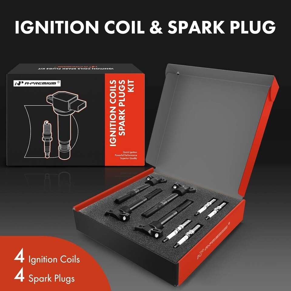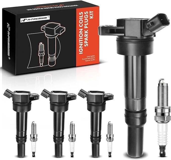 Complete Pack of 6 A-Premium Set of 4 Ignition Coil Pack (2-pin) and Iridium Spark Plugs Compatible with Hyundai Elantra 2012-2016 1.8L 4 Cyl, Tucson 2014-2020 2.0L 4 Cyl Kia Soul 2012-2019 2.0L 4 Cyl