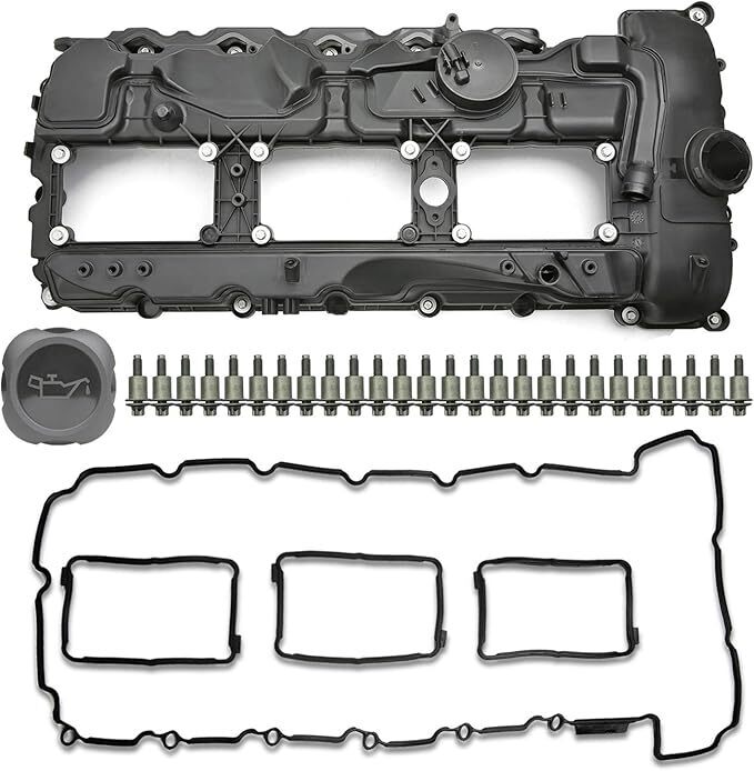 ??Valuable Choice? ? Complete Valve Cover kit (with Oil Filler Cap Gasket Spark Plug Seals Bolts) ? Pre-Installed valve cover comes with BOLTS Oil Cap GASKETS SPARK PLUG TUBE SEALS to make your install easier. ? Highly durable material to meet or exceed OE standard quality and performance requirements. ? High sealing performance and no more leaks to protect your car engine better. ? Fits well and high performance make your car run powerfully and stably ??PACKAGE?1 Valve Cover Kit includes: 1 * NEW Engine Valve Cover + 1 * NEW Engine Valve Cover Gasket + 3 * NEW Spark Plug Tube Seals + NEW Bolts + 1 * New Oil Cap ?NOTE? Please reference to the first picture as shown ??EXCAT MATCH? 2011-2013 BMW 135i 3.0L ? 2011-2014 BMW 335i 3.0L ? 2011-2014 BMW 535i GT xDrive 3.0L ? 2011-2014 BMW 535i xDrive 3.0L ? 2012-2014 BMW 640i 3.0L ? 2013-2014 BMW 740i 3.0L 4.4L 6.0L ? 2011-2014 BMW X3 2.0L 2.5L 3.0L ? 2011-2014 BMW X5 3.0L 4.4L ??OE Part NUMBER? 11127570292, 11-12-7-570-292, E346-AS ??PURCHASE WITH CONFIDENCE?In BSOC AUTO Store, right parts are guaranteed. If you are not sure about the vehicle fitment or the part ever fails on your vehicle after purchase, please let us know and we?ll take care of it. 30 days return