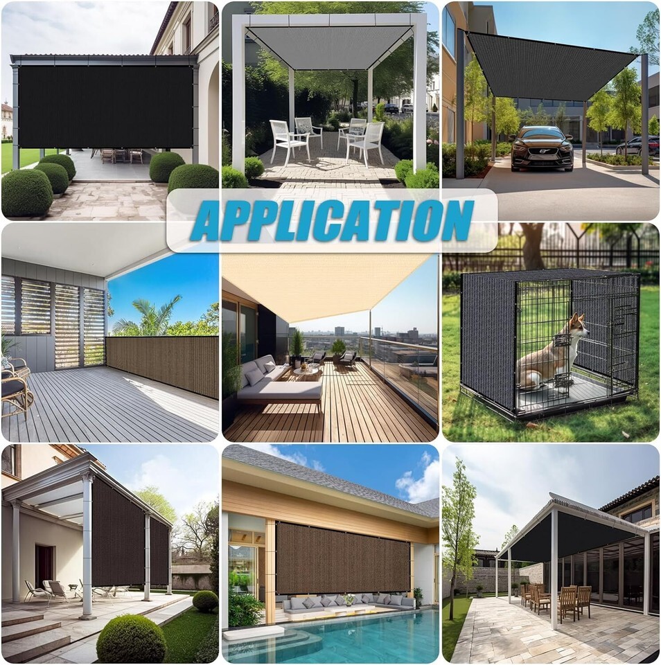 ?90% UV Blockage?:The pergola shade cloth is made of 200 GSM UV protected high density polyethylene (100%HDPE) shade fabric with strong stitched seam that resists tearing and fraying, up to 90% UV Blockage. ?Breathable Material Privacy Protection?:The breathable shade fabric provides enough light to offer you privacy from the outside world without completely blocking your view. Allow rains to pass through , so there's no pooling water ( So it is not waterproof). ?Easy to Install?: Attach to the fit size structure with zip ties or bungee balls (this shade cloth comes with 30 zip ties,12 bungee balls,and 6 nylon rope as a bonus). Strapped it down on the pergola or patio with screws for more stable. ?Reinforced Edges?: Each Amagenix outdoor sun shade cloth is designed with heavy-duty aluminum grommets that are spaced out every 2?, and 2 aluminum grommets are specially designed for each corner, which makes it easier to hang and secure with the strap or other accessories. ?Ideal Shade Solutions?: The pergola replacement canopy provides dense outdoor shade of 90% shade rate. Widely used over a patio,garden, carport, porch, deck, pergola, courtyard or other outdoor area.