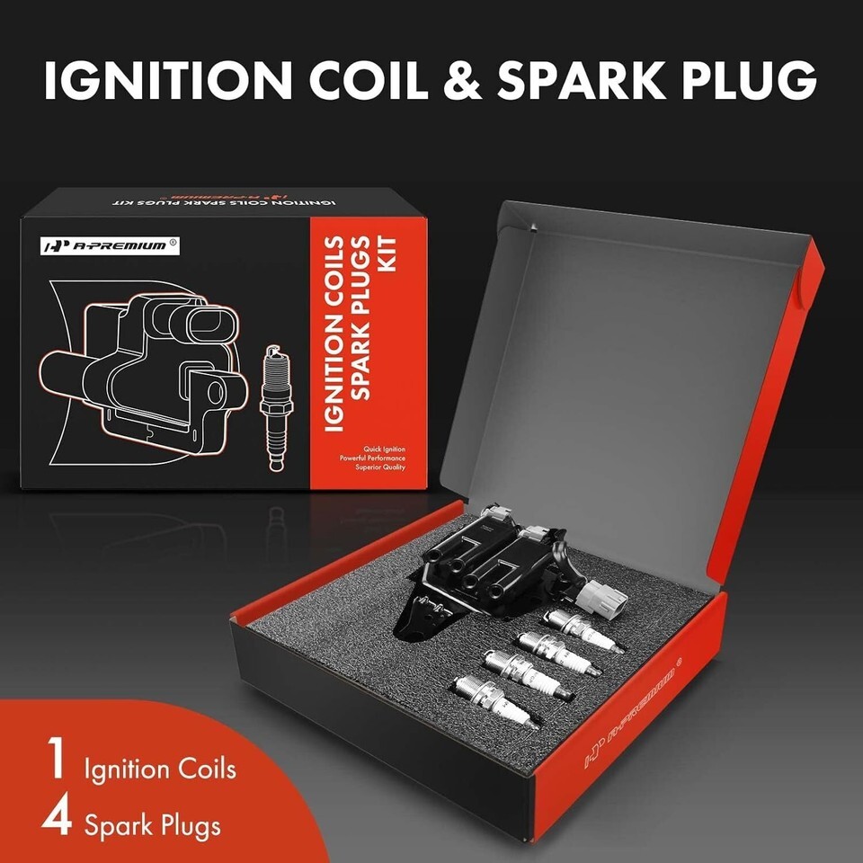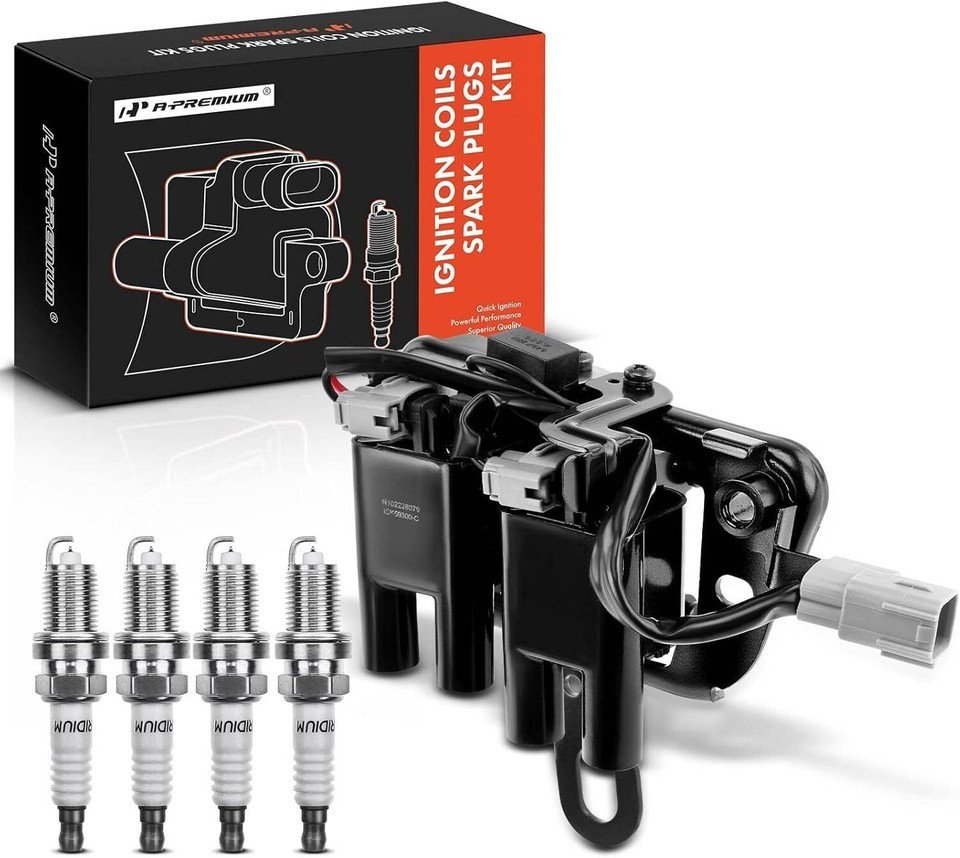 A-Premium Ignition Coils and Spark Plugs Kits Compatible with Hyundai Elantra 2007-2012 Kia Soul 2010-2011, 2.0L