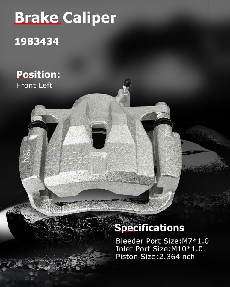 FITS: For Pontiac For Vibe 1.8L 2009 2010,For Scion For xD 1.8L 2008 2009 2010 2011 2012 2013 2014,For Toyota For Corolla 1.8L 2009 2010 2011 2012 2013 2014 2015 2016 2017 2018 2019,For Toyota For Corolla 2.4L 2009 2010 2011 2012 2013,For Toyota For Matrix 1.8L 2009 2010 2011 2012 2013 2014 BRAKE CALIPER SPECIFICATION: Bleeder port size:M7 x 1.0;Inlet port size:M10 x 1.0;Piston diameter:2.364inch;Piston Count:1 Piston;Piston Material:Iron REFERENCE NUMBER: 19B3434(Front Driver Side) ADVANTAGE: Adopt advanced technology, with the characteristics of high strength to ensure the stability of caliper brake power output. Built to Strict Quality Control Standards,All Brake Calipers meet or exceed OEM specifications. PERFECT MATCHER(For BUYER): Before Purchase,Check the Amazon Fitment System and the MAKE/MODEL/TRIM in the description in the upper left corner.