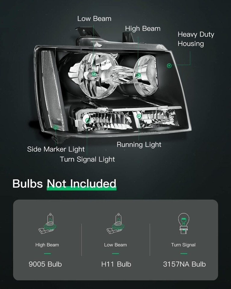 LSAILON Headlight Assembly Replacement Fit 2007-2013 For Chevy Avalanche
