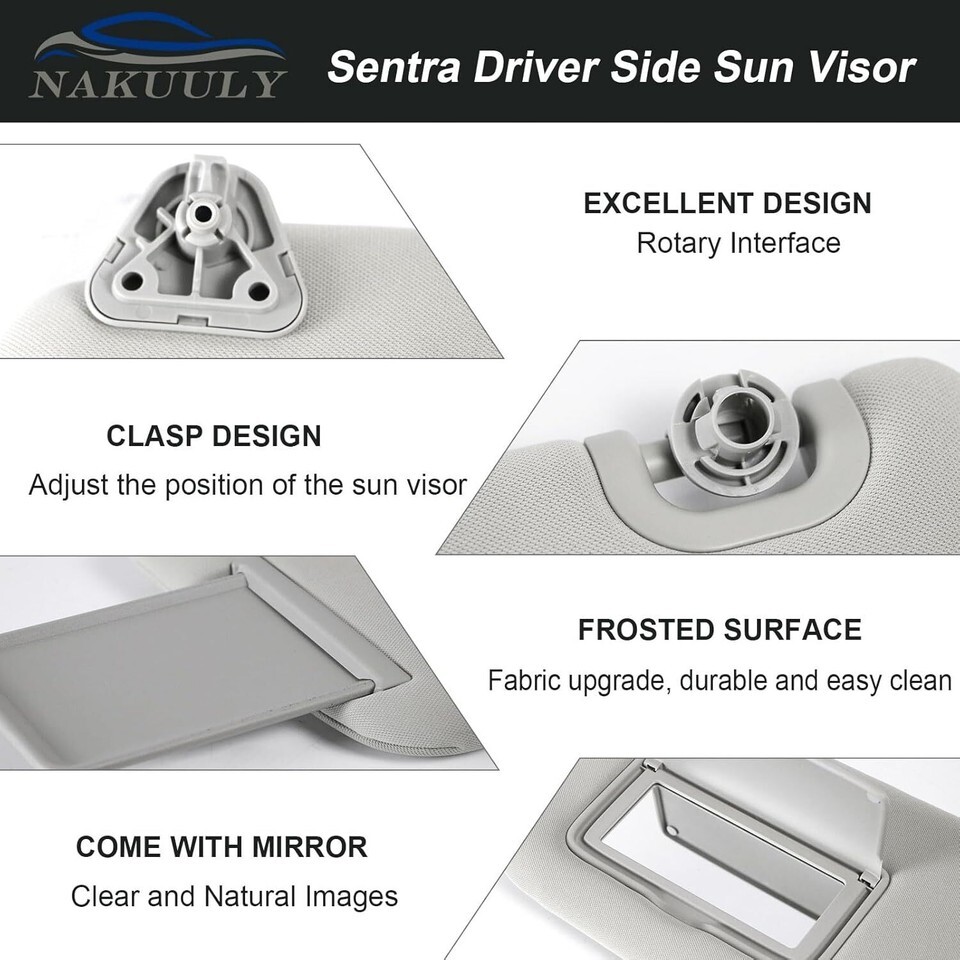 Compatible with: Driver side sun visor compatible with Nissan Sentra 2013 2014 2015 2016 2017 2018 2019 Replaces Part: 96401-3SG8A, 964013SG8A. This sun visor without light Replacement Left Side Sun Visor: The sun visor is designed to avoid the glare of sunlight and prevent the influence of sunlight, the Best replacement for your old or worn sun visor. avoiding the occurrence of accidents and also has a better cooling effect Easy to Install: You can directly replace the old and the bad ones in the car and partially install the bracket cover into the sun visor bracket making sure both temporary set claws are engaged Customer Support: The gray sun visor from BaoSJ comes complete with great customer support. If the Sun Visor ever fails on your Nissan sentra 2013-2019, please contact us to solve the problem for you immediately