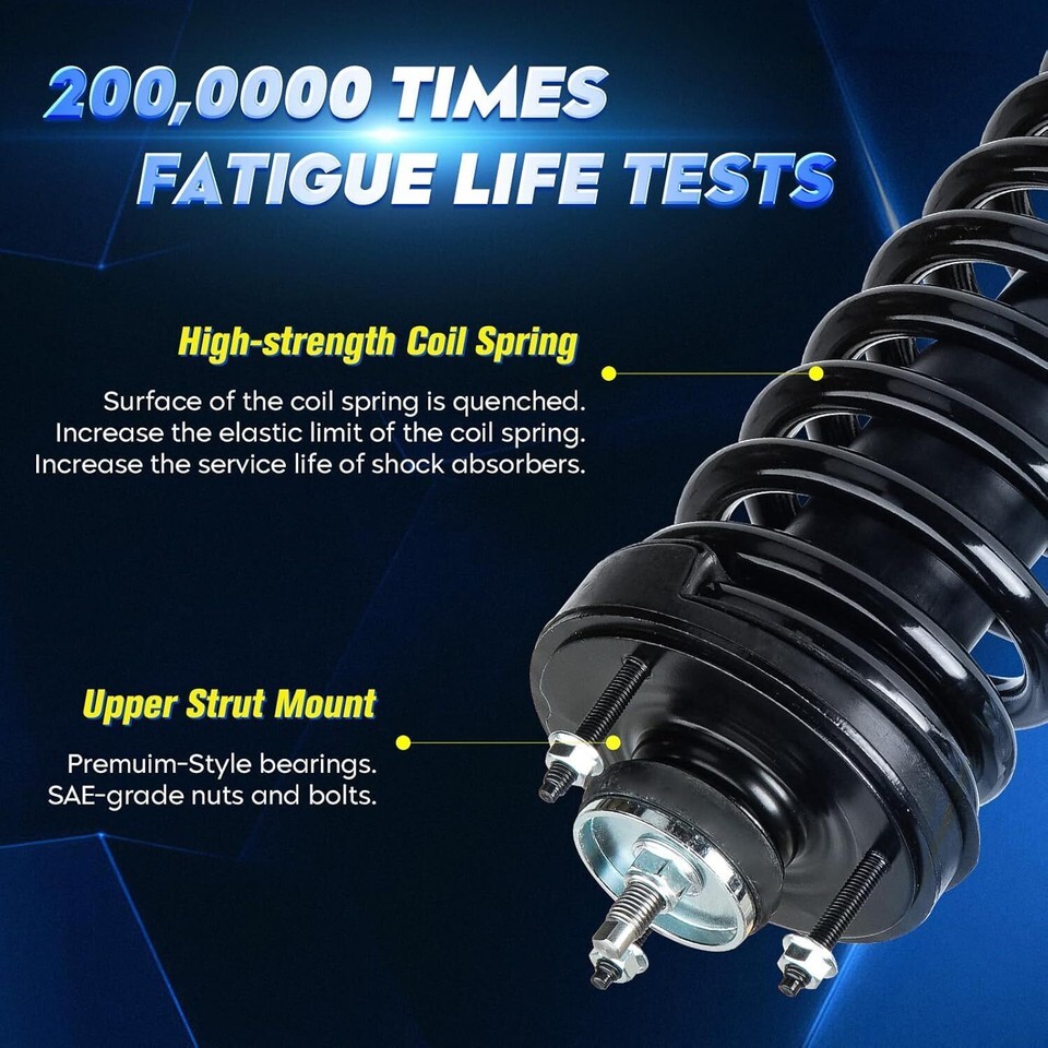 Compatible with: for Lincoln Town Car Sedan 2003-2011, for Mercury Grand Marquis 2003-2011, for Ford Crown Victoria 2003-2011 (excluding police package) Replace for Part Number: Replace 171346 Kit Includes: 2x front strut shock assembly with coil spring Inflatable Design: Greater damping for greater work reliability; High-pressure gas and oil are separated by a floating piston, eliminating oil emulsification Quality Assurance: 12-month warranty! tested before shipping, perfect match to the factory part. 100% satisfaction guarantee. for any problems, Pls contact us via email