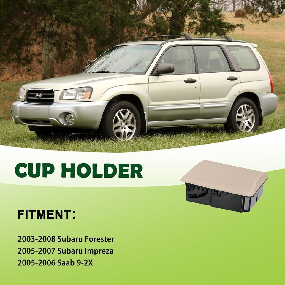 REPLACEMENT PART NUMBER6: 66150SA100ND COMPATIBLE WITH: The rear cup holder Insert compatible with Subaru Forester 2003 2004 2005 2005 2006 2007 2008 03 04 05 06 07 08, Subaru Impreza 2005 2006 2007 05 06 07, Saab 9-2X 2005 2006 05 06. Please refer to the vehicle compatibility above to ensure proper part FEATURES: The pull out cup holder is made of high-quality plastic with Strong Stability and Long Lasting Durability Replacement new parts fit perfectly with the car to help provide a safer driving experience SERVICE LIFE EASY INSTALLATION: Our Rear Center Console Cup Holder is not the real original parts,but it uses advanced technology and high-quality materials in line with oem standards,more effective extension of service life,directly replace the old cup holder,easy to install can save you time and money. BUY WITH CONFIDENCE: 1-Year Warranty.If you have any questions or concerns about the car rear middle drink cup holder,please contact us by email and we will provide you with satisfactory service support