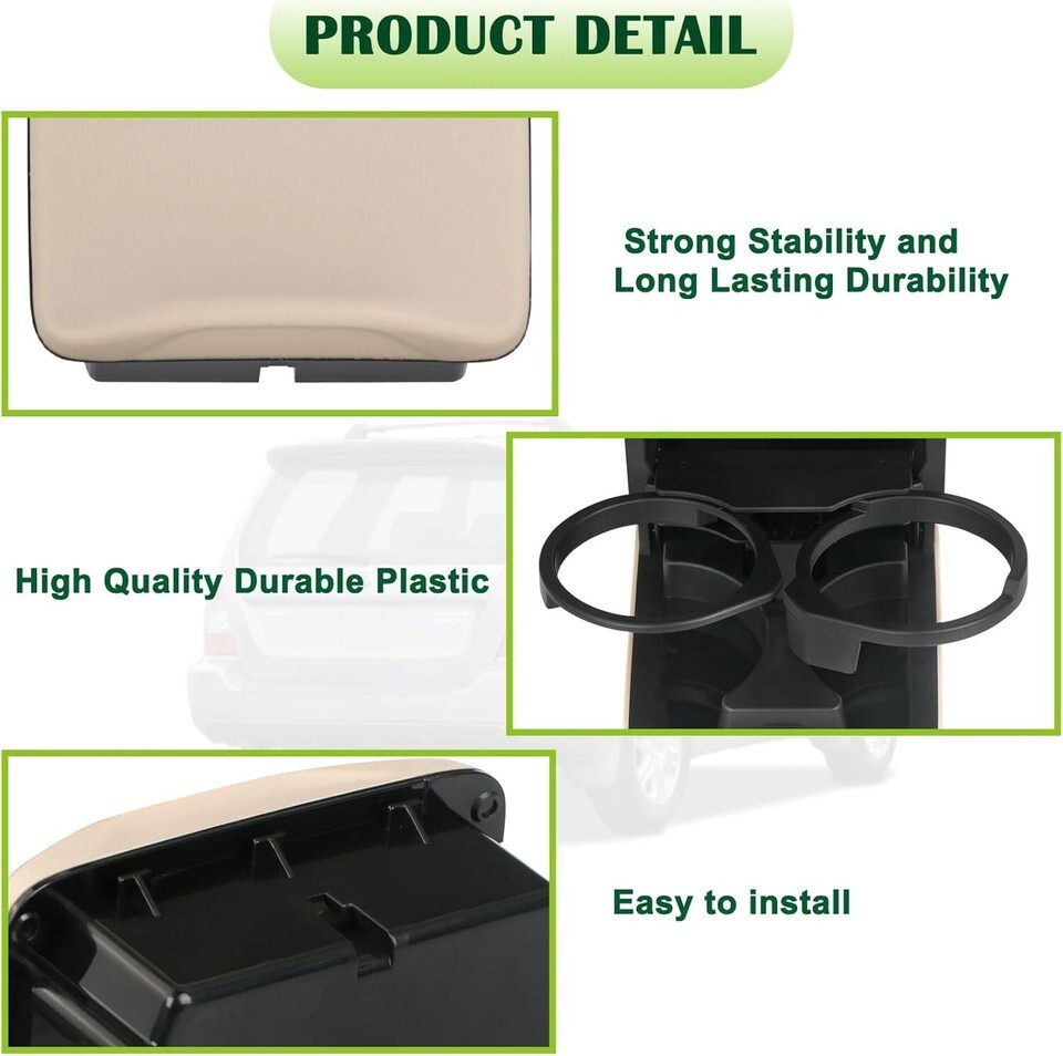 Rear Center Console Cup Holder Assembly Beige Compatible with 2003-2008 Subaru Forester 2005-2007 Subaru Impreza Replaces 66150SA100ND