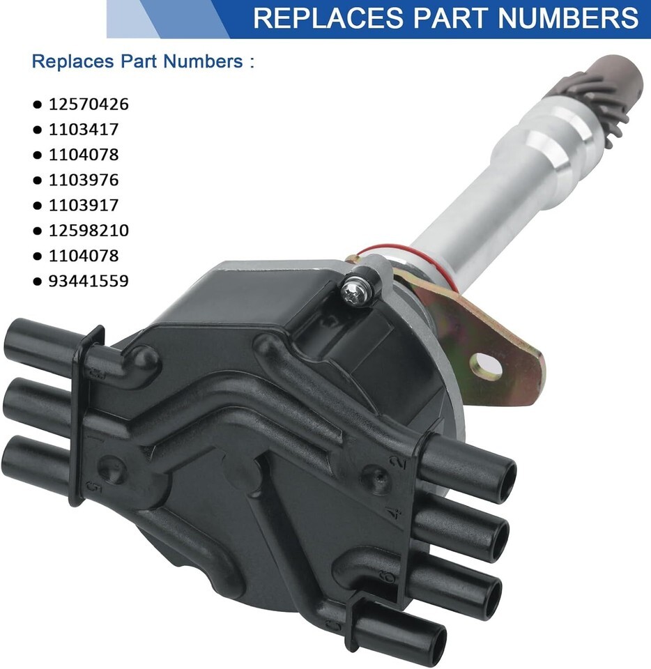 High Performance Ignition Distributor with Cap Rotor Compatible with Chevy GMC Pickup Truck 4.3L V6 Vortec 1996-2007, OEM 12570426 1103417 1104078 1103976 1103917 12598210 01104078 93441559