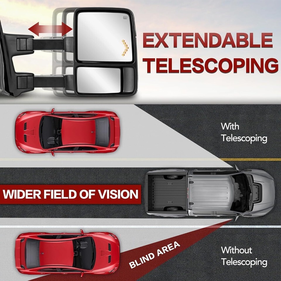 Tow Mirrors Compatible for 2008-2016 Ford F250 F350 F450 F550 Super Duty Chrome
