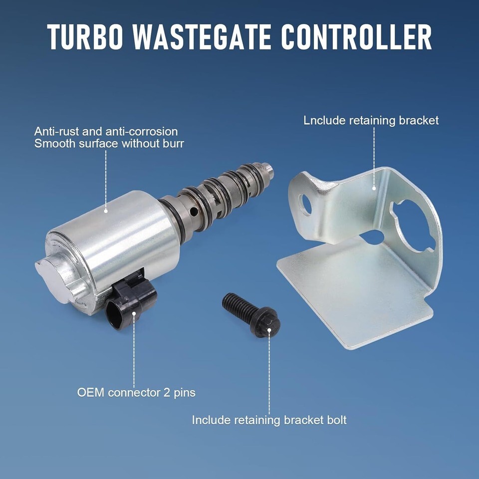 [COMPATIBLE WITH FORD CHEVY] Compatible with 04-05 Ford E350 Club Wagon, 04-10 Ford E350 E450 Super Duty,03-05 Ford Excursion, 03-07 Ford F250 F350 F450 F550 Super Duty, 04-07 Ford F650 F750 Super Duty. Compatible with 04-09 Chevy C4500 C5500 C6500 C7500 C8500 Kodiak, 06-10 Chevy Express 2500 3500 4500, 04-10 Chevy Silverado 2500 HD, 07 Chevy Silverado 2500 HD Classic, 04-06 Chevy Silverado 3500, 07 Chevy Silverado 3500 Classic, 07-10 Chevy Silverado 3500 HD, 04-09 Chevy T6500 T7500. [COMPATIBLE WITH GMC WORKHORSE ISUZU]Compatible with 04-09 GMC C4500 C5500 C6500 C7500 C8500 Topkick, 06-10 GMC Savana 2500 3500 4500, 04-10 GMC Sierra 2500HD, 07 GMC Sierra 2500HD Classic, 04-06 GMC Sierra 3500, 07 GMC Sierra 3500 Classic, 07-10 GMC Sierra 3500HD Classic, 04-09 GMC T6500 T7500, 04-09 GMC Topkick C8500. Compatible with 05-11 Workhorse LF72, 09 Workhorse R26, 07 Workhorse Custom Chassis W72, 05 Workhorse Custom Chassis P42. Compatible with 04-209 Isuzu FTR FVR FXR. [REPLACE PART NUMBER] 3C3Z6F089AA, 904-268, 5C3Z6F089A, 5C3Z-6F089-BA. Please scroll down to product description for complete list of model and year. [DURABLE CONSTRUCTION] The wastegate solenoid utilizes aluminum valve bodies that are surface-treated to create micro finished surfaces for increased wear resistance, means you will get a fairly reliable VGT actuator to perform excellently under all engine operating conditions. [IDEAL REPLACEMENT] The turbocharger wastegate solenoid comes with all o-rings, retaining bracket and the retaining bracket bolt. It is precision-engineered to match the fit and function of the original VGT solenoid actuator.