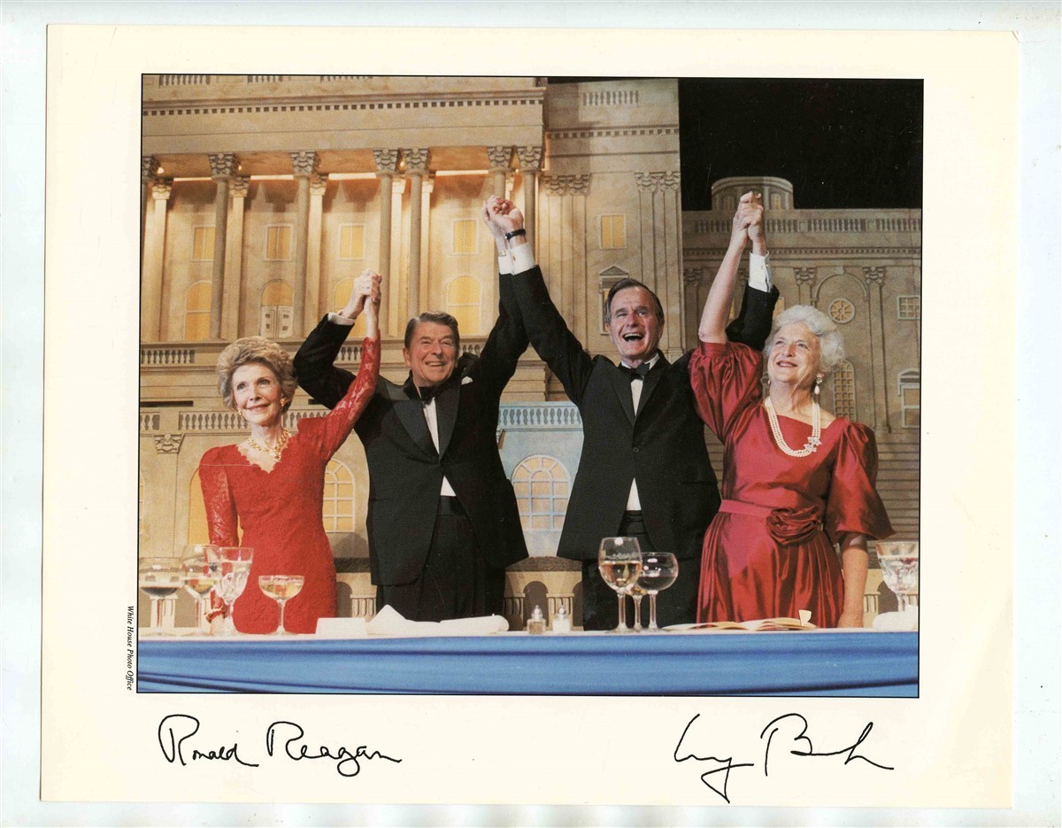 Ronald Reagan George Bush Wives Signed White House Inauguration Photo
