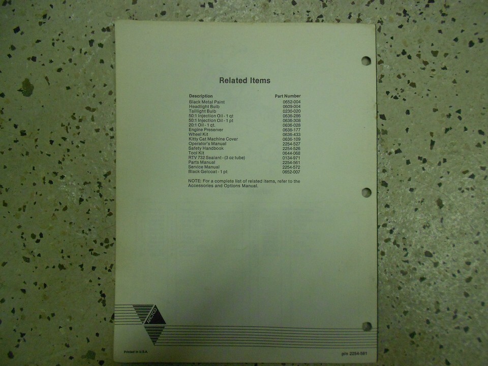Informatif avec des illustrations, aucune page manquante, illustrations et/ou diagrammes, excellent manuel a avoir lorsque vous possedez un Kitty Cat ARCTIC CAT. Ce manuel vous fera economiser de l'argent Reparations/Service.