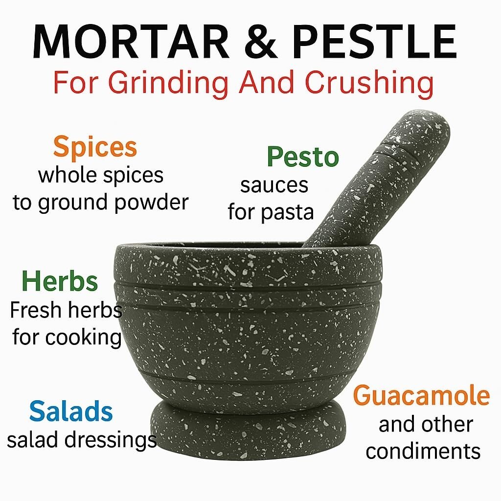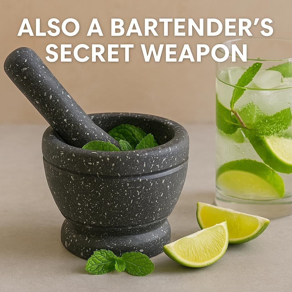 Ideal for preparing fresh spice blends, pesto, salsa, guacamole, chutneys, marinades, and muddling ingredients for cocktails.