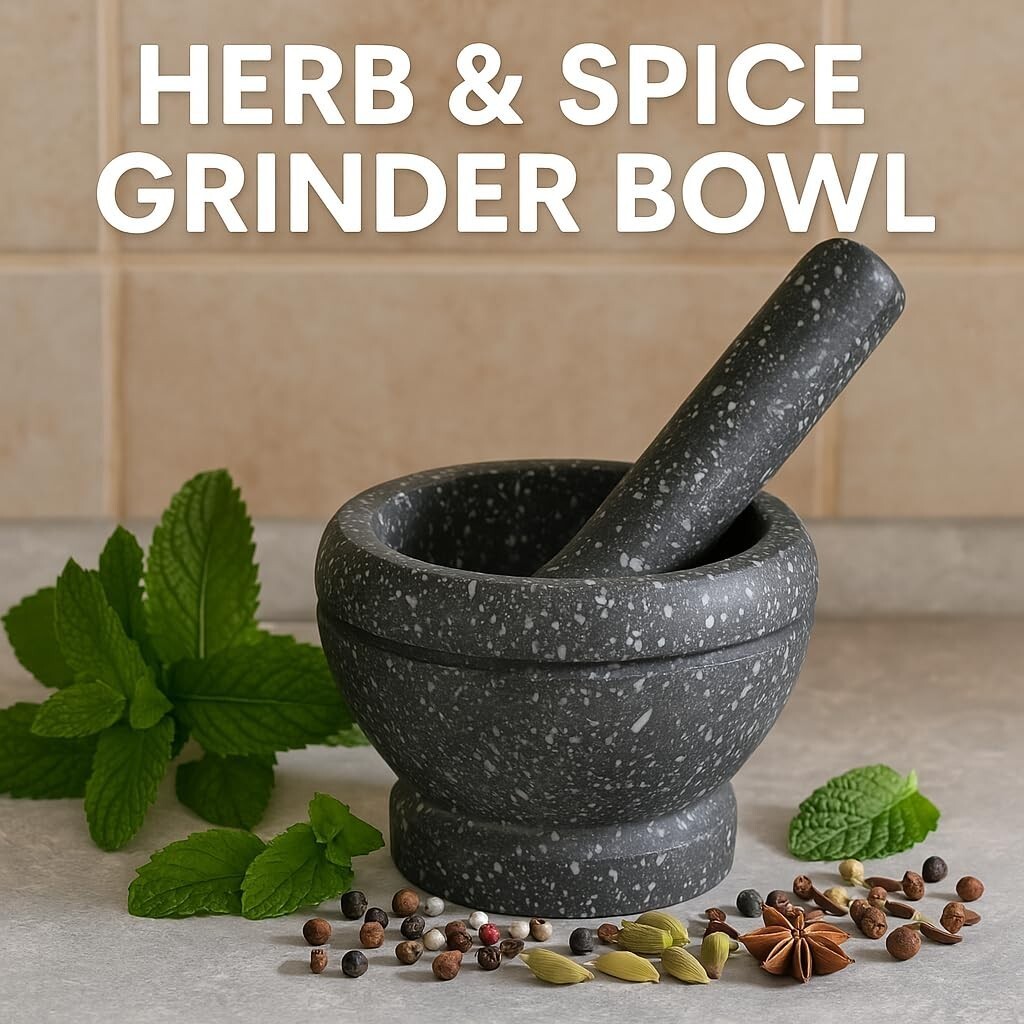 4.25" Marble Mortar & Pestle Set Herb Spice Grinder BPA-Free Bowl