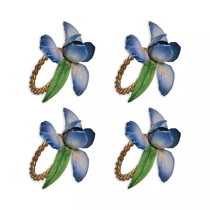 Bring fresh elegance and artistic charm to your table with the Juliska Meadow Walk Iris Napkin Rings. Inspired by blooming spring gardens, this exquisite set of four features beautifully hand-painted iris flowers in soft chambray blues and fresh greens, gracefully set on a radiant gold-tone ring.