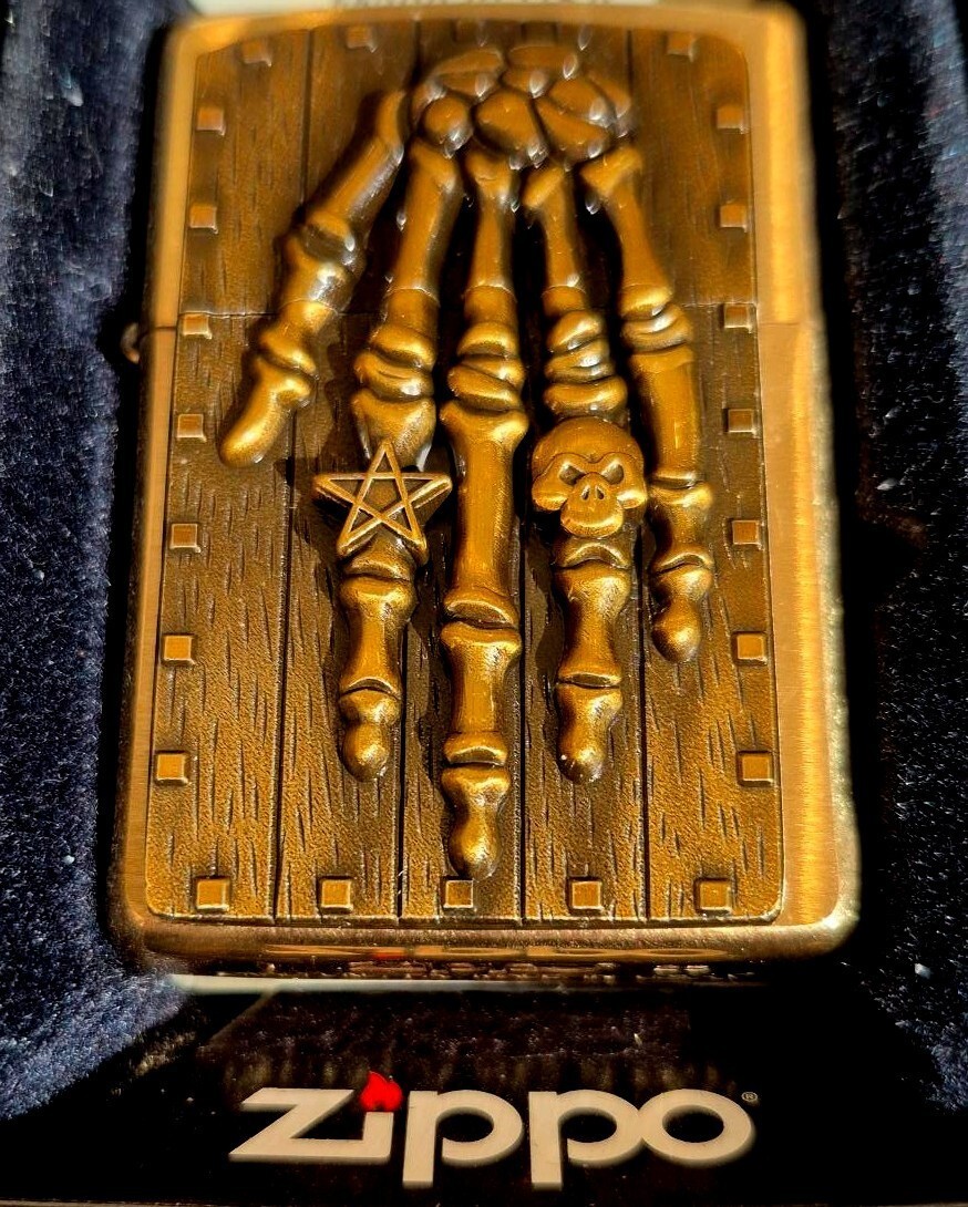 Sharp Armor Brass Satanic Skeleton Hand 3D Emblem Zippo Lighter