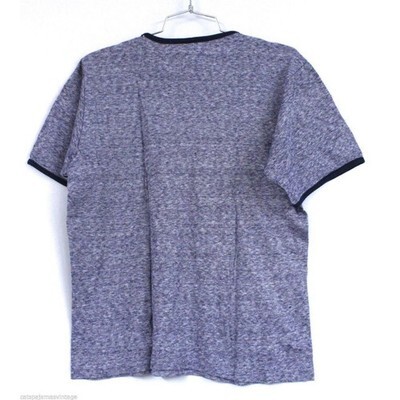 A perfectly preserved piece of classic Americana, this vintage 1960s Champion ringer t-shirt is a fantastic find. Crafted from 100% cotton, the blue heathered fabric with a subtle stripe is complemented by the signature blue ringer collar and sleeve cuffs. This rare collegiate piece represents Lycoming College in Pennsylvania and was recently discovered in a hoard of shirts from the mid-20th century. It is in excellent, barely worn condition, with no tags, presenting a unique opportunity to own a nearly pristine garment from the past. By choosing this pre-owned piece, you are making a sustainable choice and preserving a bit of American college history.