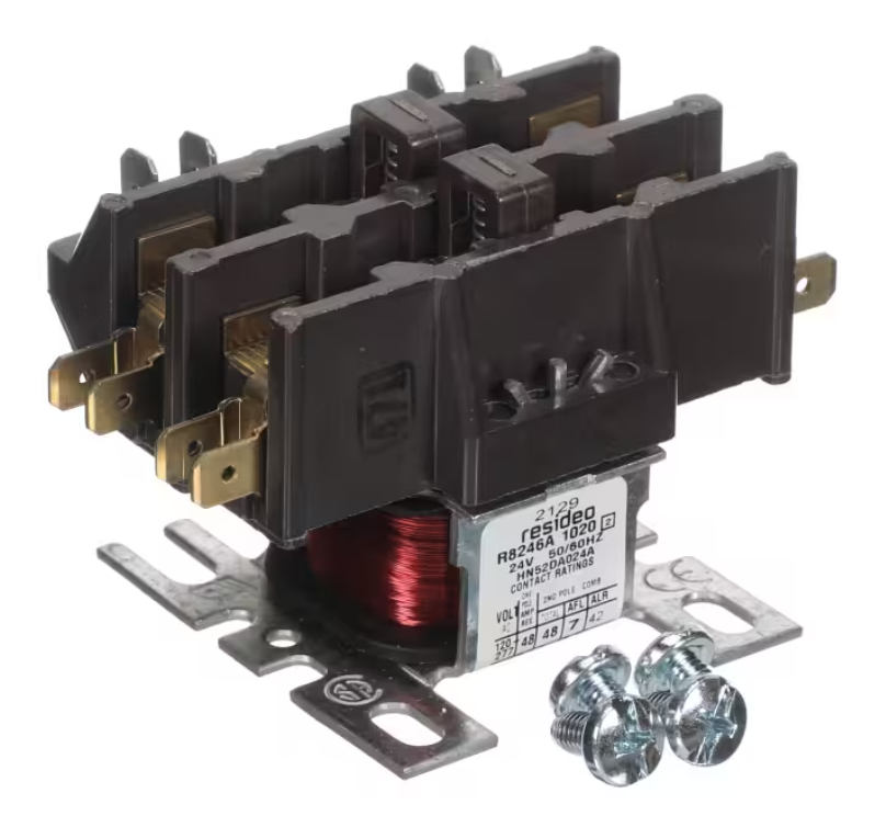 The Carrier HVAC R8246A Contactor is a reliable 2 Pole electrical contactor designed for dependable switching performance in HVAC systems. Featuring a 24VAC 50/60HZ coil, this contactor ensures precise control and stable electrical operation in residential and commercial heating and cooling equipment. Built for durability and consistent performance, it serves as a direct replacement component to restore proper system functionality and minimize downtime.