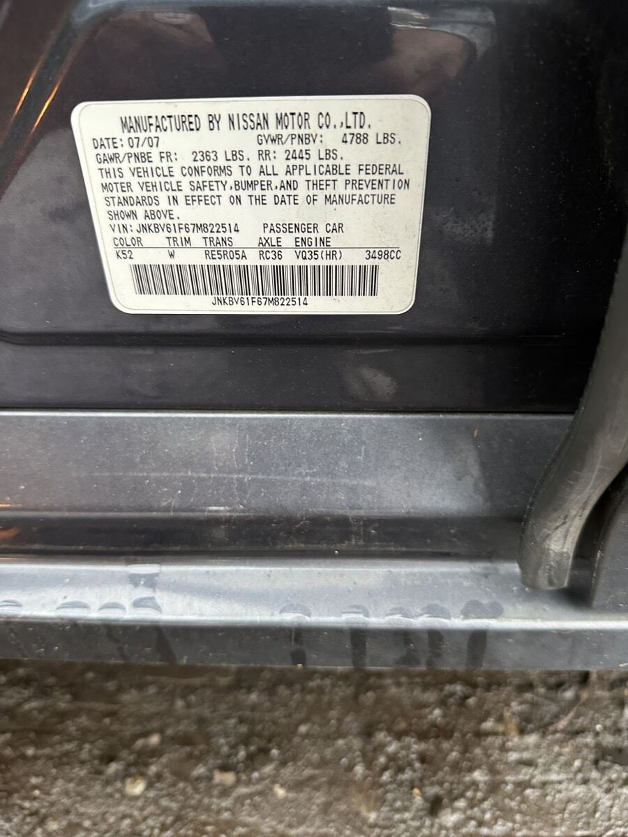INFINITI G35 07 (xenon, HID), 4 Dr (Sdn), w/o adaptive headlamps; L.