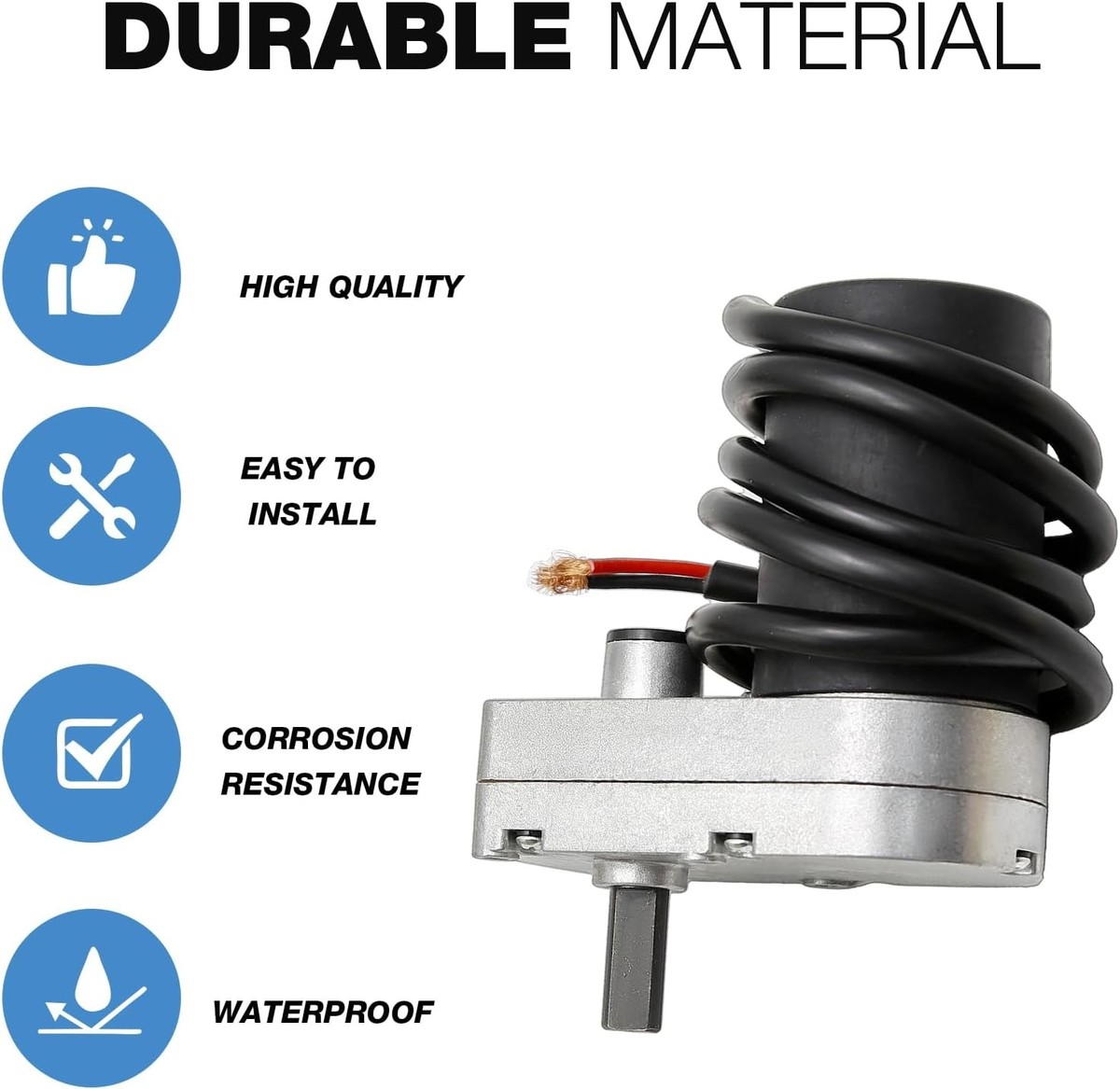 Detailed Specifications: Voltage: 12V DC, No load current: 1.2A, No load speed: 85rmp, Rated current: 4.5A, Rated speed: 73rpm, Rated torque: 3N.m, Gear ratio: 52.8:1, Wine length: 48". Replace part numbers: 759091, LC759091. Wide Compatibility: The electric RV stabilizer motor is widely used in trailer leveling systems, electrical domestic appliances, RV leveling systems, high-speed power stabilizer Jack, fans, electric bicycles, boats, cars, etc. A perfect choice for replacement and repair needs of RV stabilizer motor. Easy Installation: Simply replace the old or malfunctioning one with this electric RV stabilizer motor, the installation is easy and requires no special tools or complicated operations. You can complete the whole process all by yourself, a time-saving choice! Premium Quality: Our Electric RV Stabilizer Motor is made of high-quality materials featuring a nice rubberized sleeve covering a two-wire cable, which protects the stabilizer from infiltration, dirt, and grim. We highly value your satisfaction and strive to provide a better user experience! If you have any questions about the item, please feel free to contact us! Warm Tips: To prevent unnecessary hassles of return, please check the replace part number of this motor and ensure it is fit for your equipment!