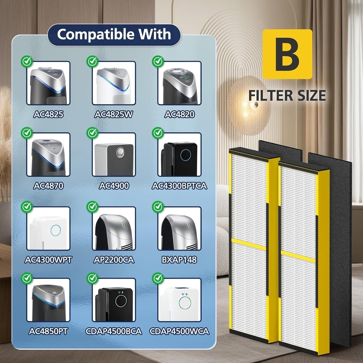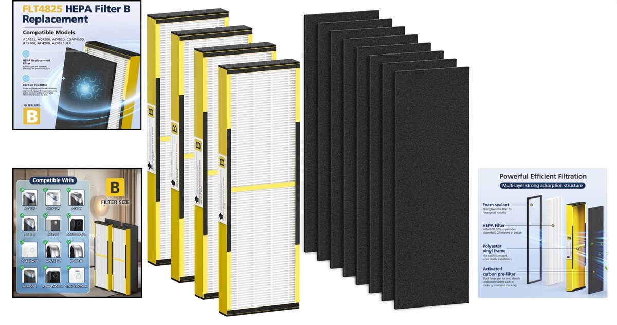 HEPA Filter B Replacement for Guardian Air Purifiers - 4 HEPA + 8 Carbon Filters