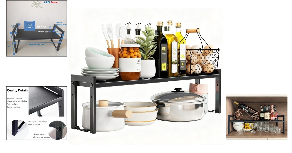Modern Expandable Kitchen Shelf Organizer (16-26”L) – Easy Assembly & Durable