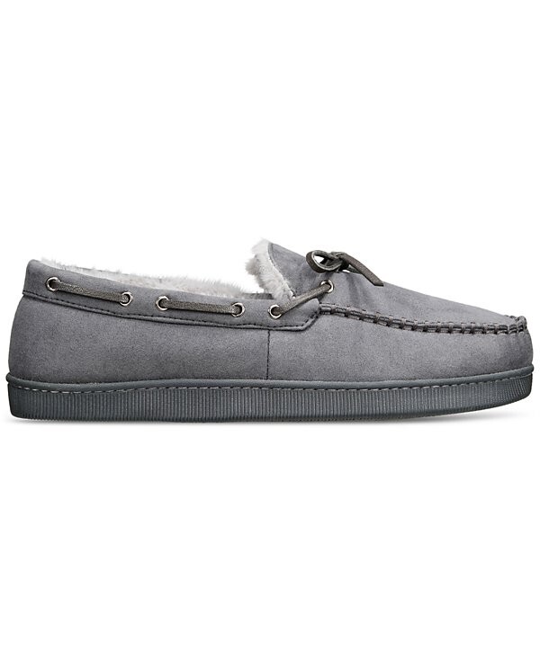 Club Room Men's Moccasin Slippers in Gray-Small 6-7