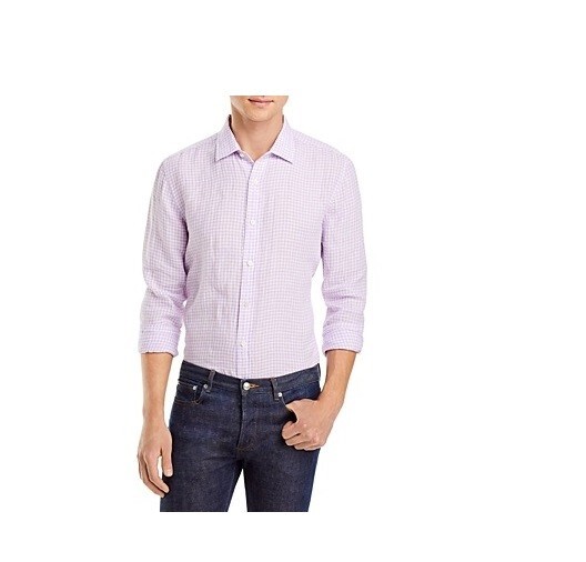 The Men's Store At Major Dept Store Regular Fit Gingham Linen Shirt Orchid-XL