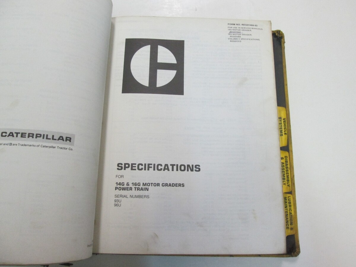 Caterpillar Disassembly Assembly 14G Vehicle Systems Manual