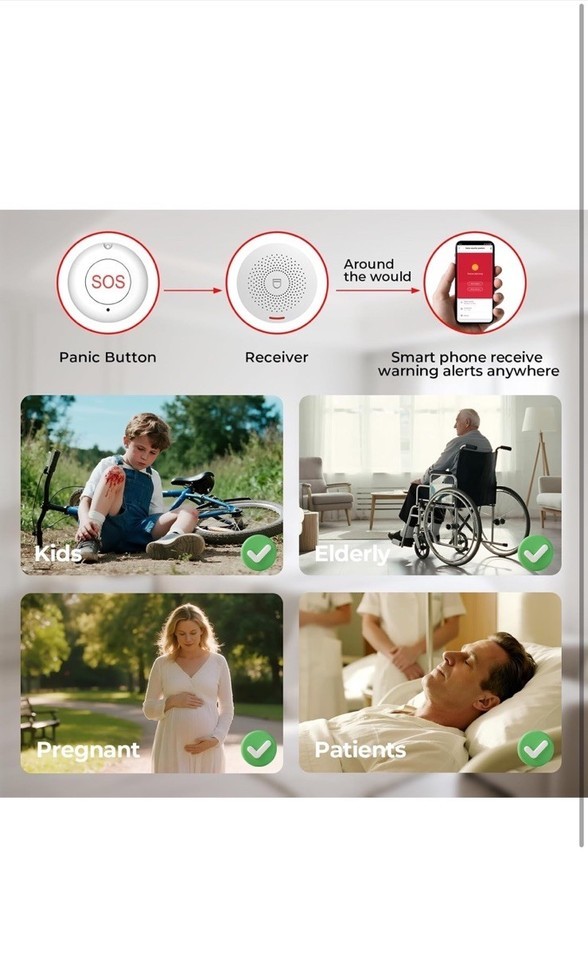 Wireless Caregiver Pager Life Alert System Pager Call Button Watch Wi-Fi App.