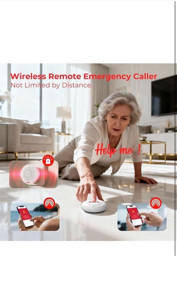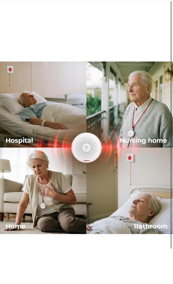 Wireless Caregiver Pager Life Alert System Pager Call Button & Watch Wi-Fi App