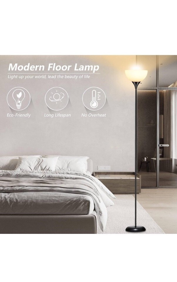 Rislg Black Floor Light Up Shining Light With Rotating Switch With White Shade