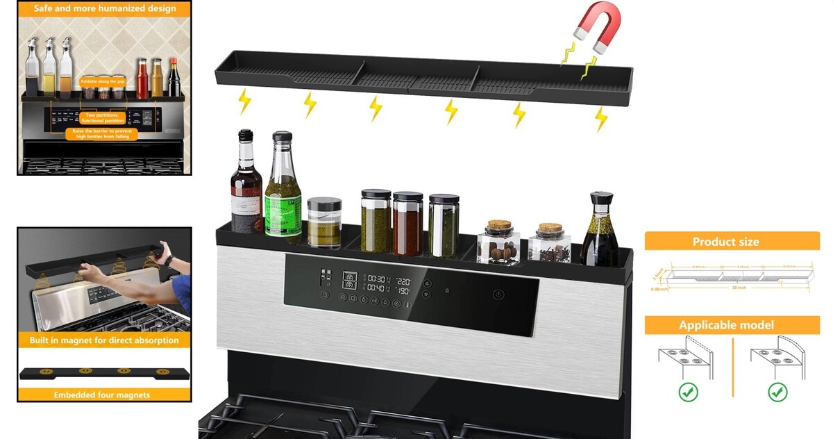 30" Silicone Stove Top Shelf with Adjustable Partition - Stylish Kitchen Storage