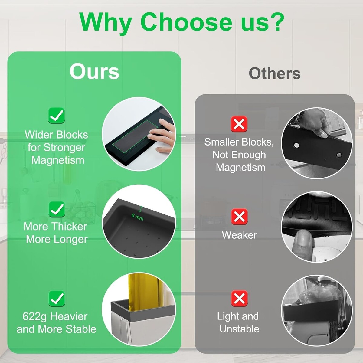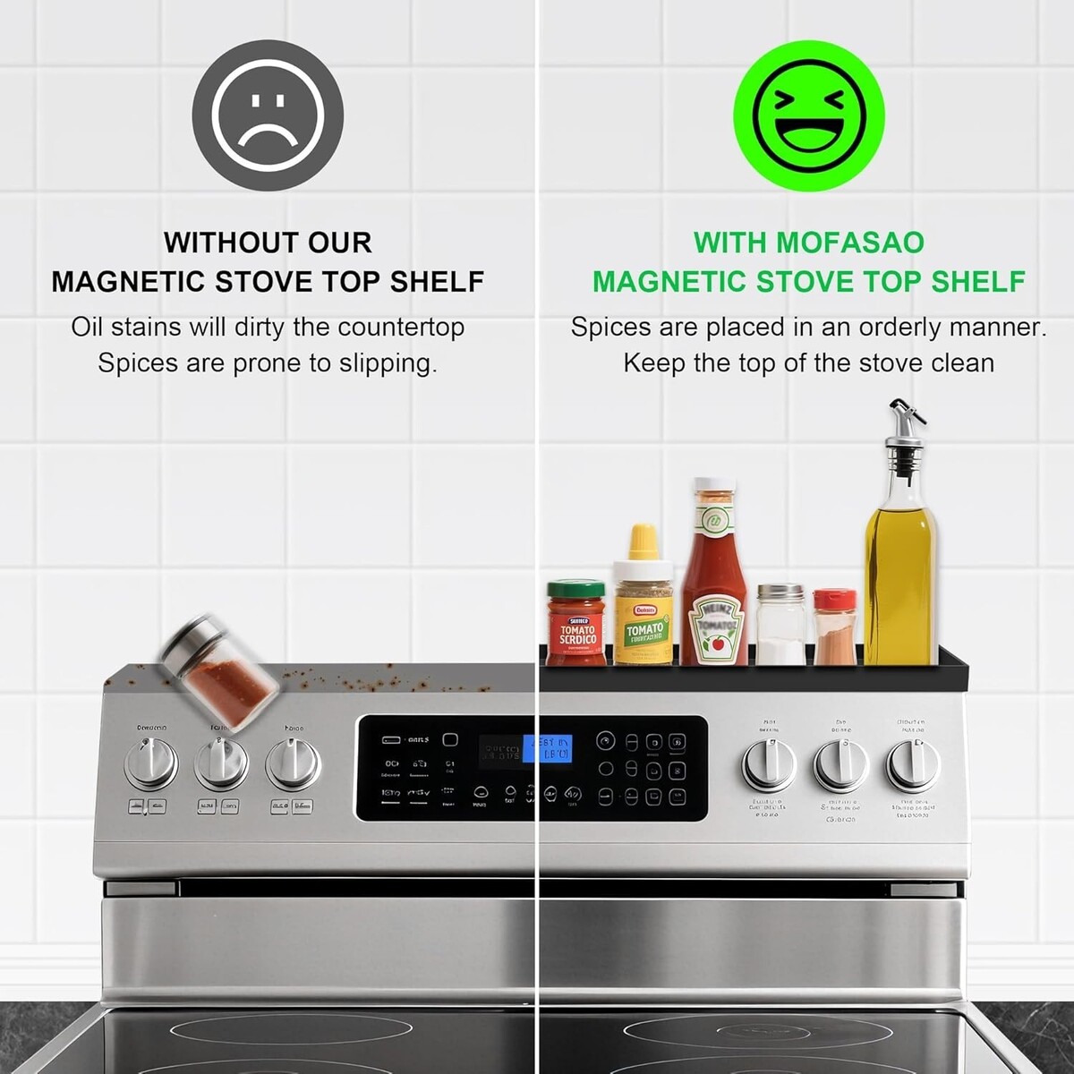 30-Inch Magnetic Silicone Stove Top Shelf – Non-Slip Organizer in Black