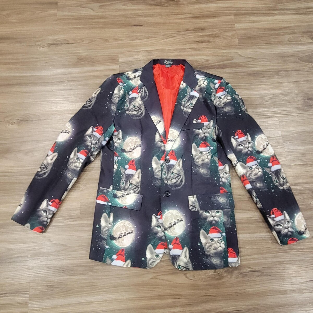 Life Of The Party Suit Mens Medium Cat Santa Christmas Light Up Jacket Pants