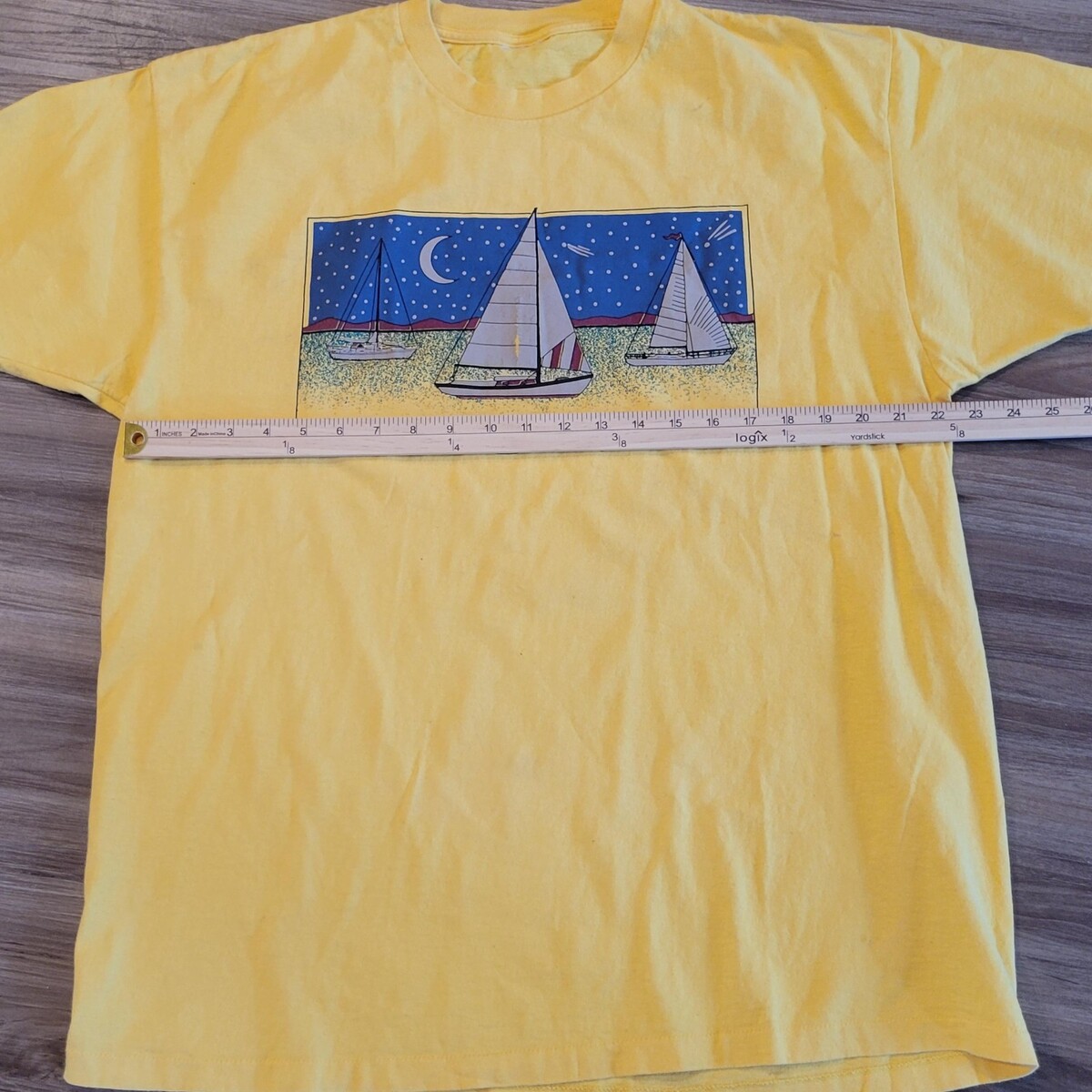 Vintage Boston MA Sailboat T Shirt USA Made 90s Yellow Graphic XL Single Stitch