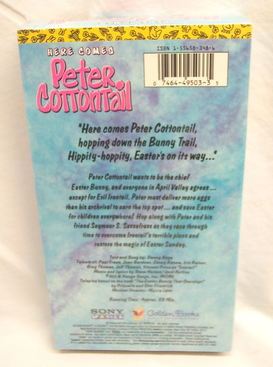 This is a Vintage Rankin Bass HERE COMES PETER COTTONTAIL Classic VHS VIDEO. It has a run-time of 53 Minutes. It is NEW in the shrinkwrap. Made by Sony Wonder and Golden Book Family Entertainment. Combine auctions to save on shipping. Please contact me if you need to make other payment arrangements. EAG