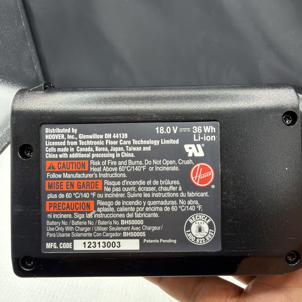 Genuine Original OEM Hoover Vacuum BH50000 LiNX Lithium Ion 18V Battery BH50005